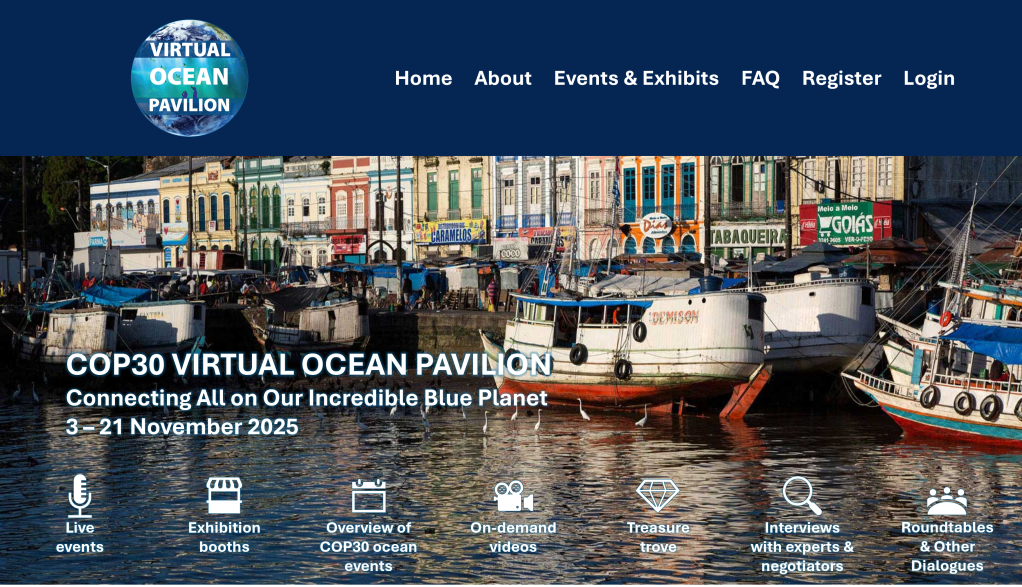 Diverse and wide-ranging exhibits organized by leading ocean and climate organizations to showcase new and ongoing ocean-climate-biodiversity initiatives will be featured in the COP30 Virtual Ocean Pavilion Exhibit Hall. The exhibition booths will showcase ocean and climate activities and resources of collaborating partners and sponsors. The booths will also provide access to information that attendees can ‘take away’ in virtual delegate bags as well as venues for informal meetings with experts and networking among exhibit hosts and attendees.